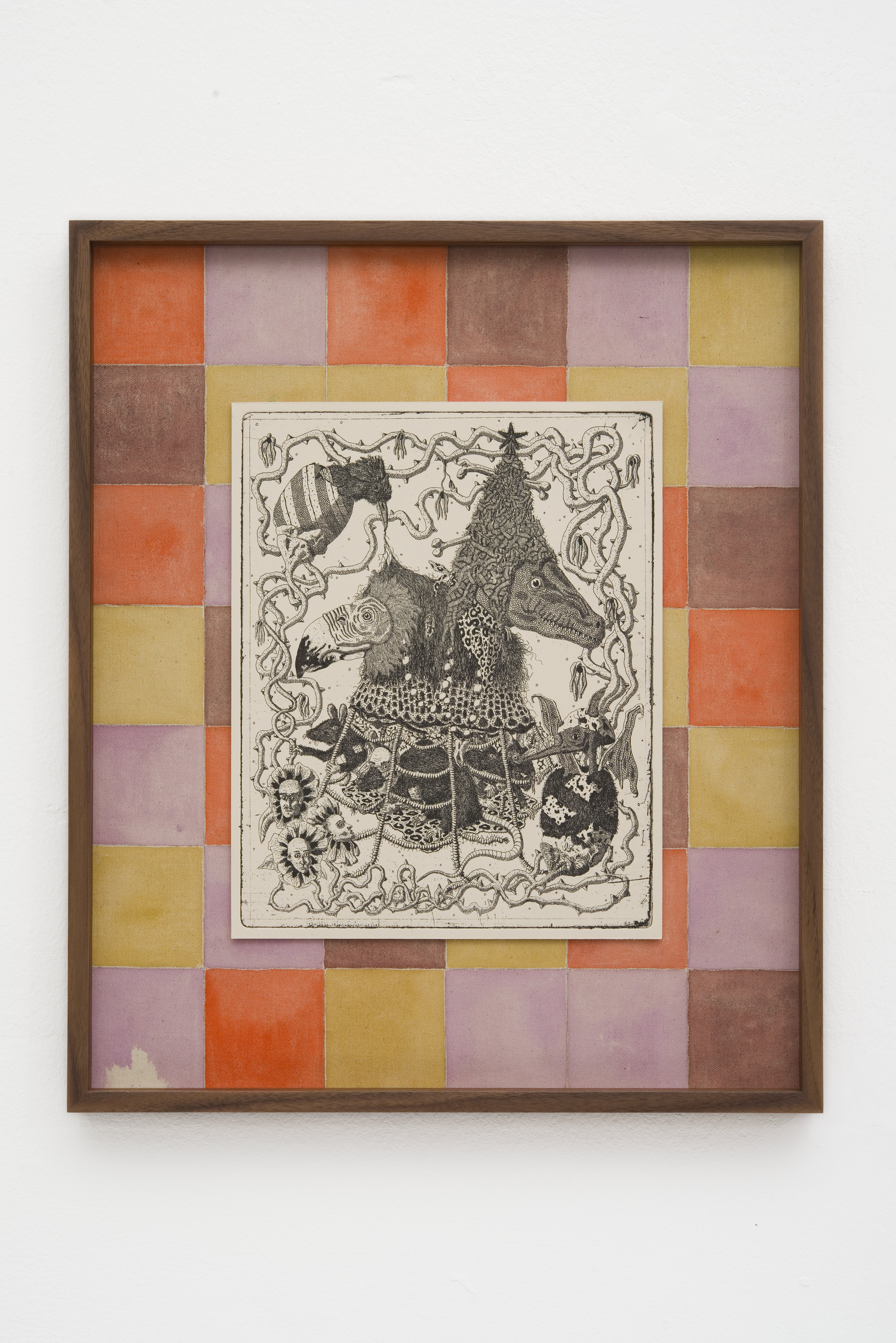 framed etching w/ watercolur on canvas (50cm × 42cm × 4cm)