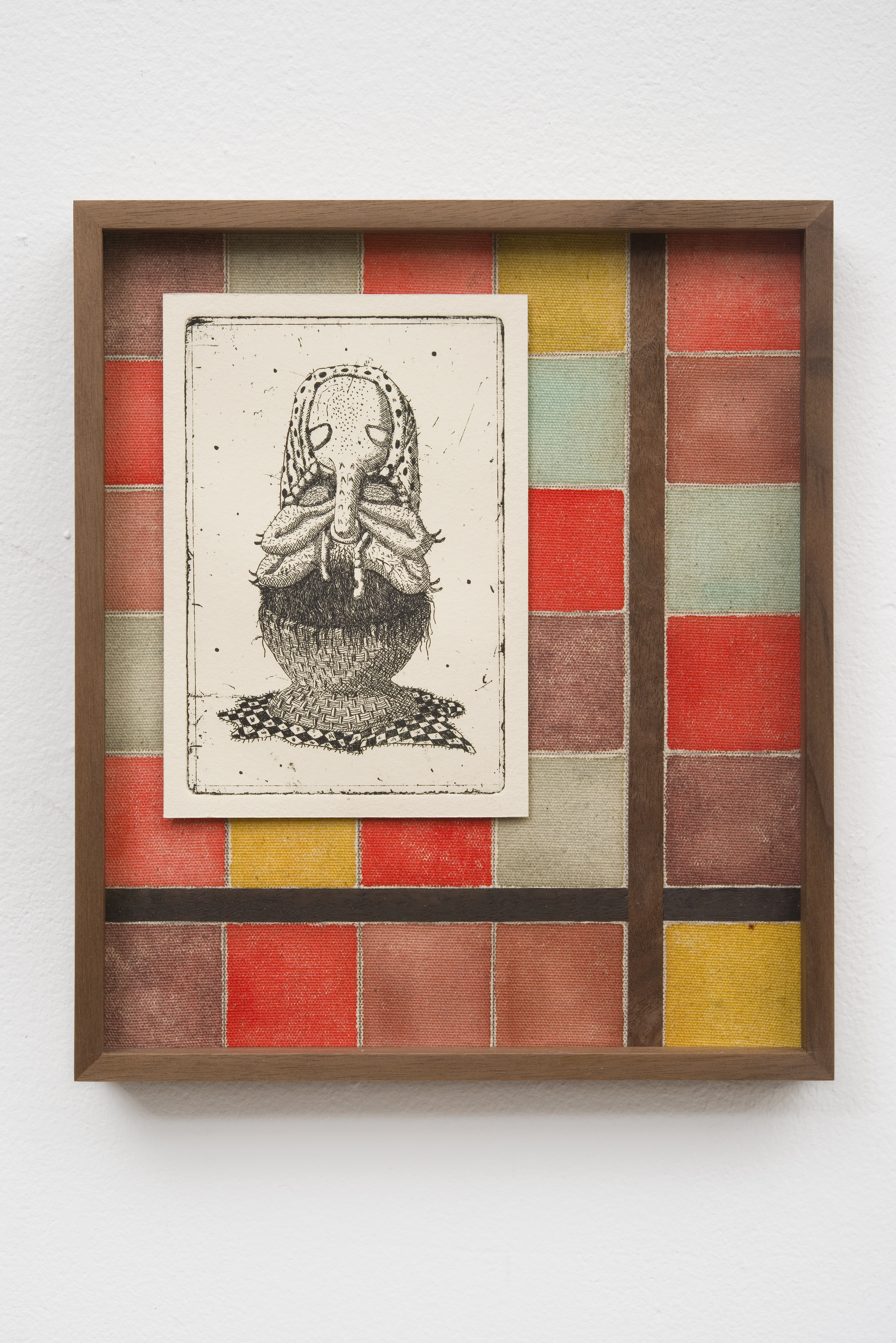 framed etching w/ watercolour on canvas