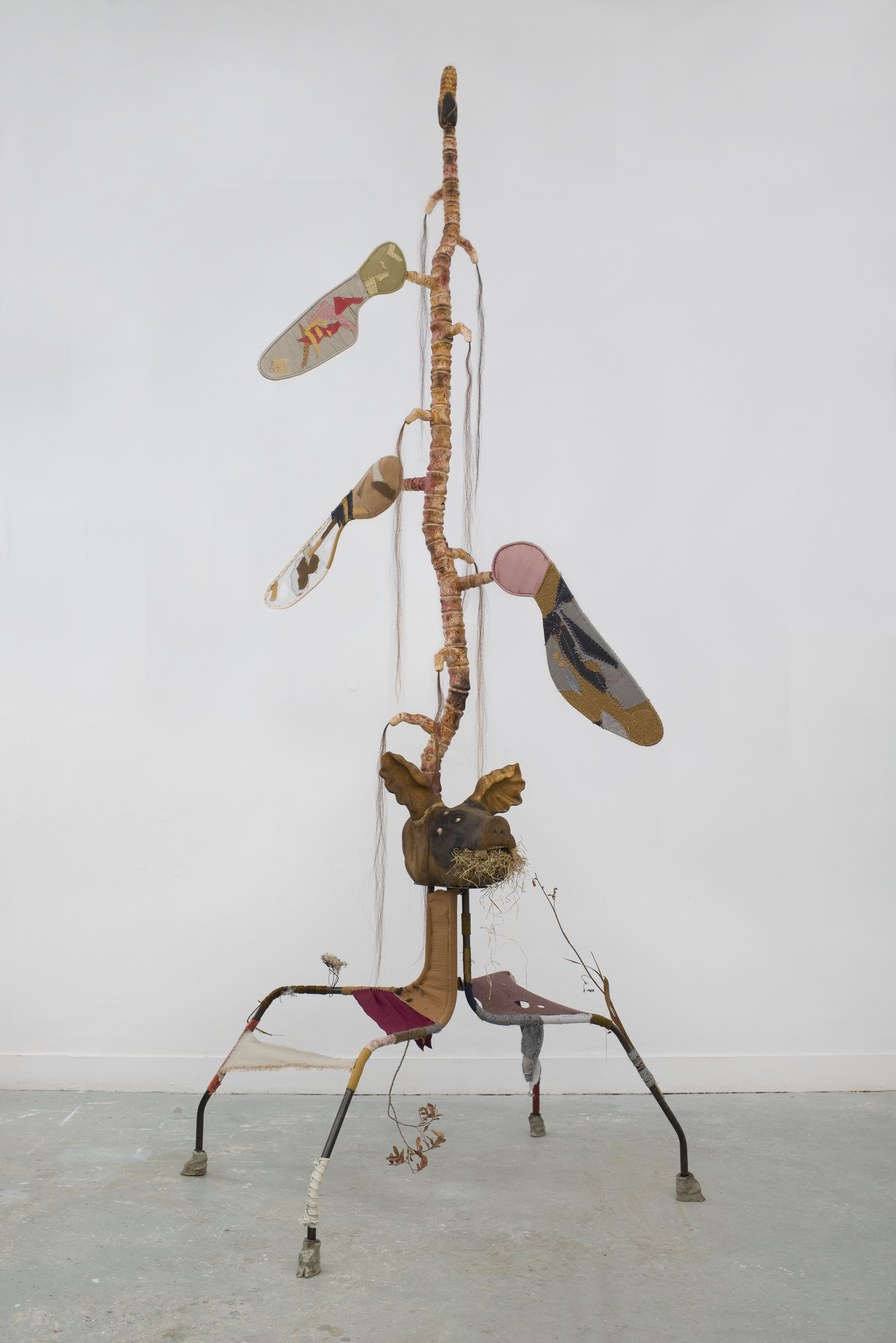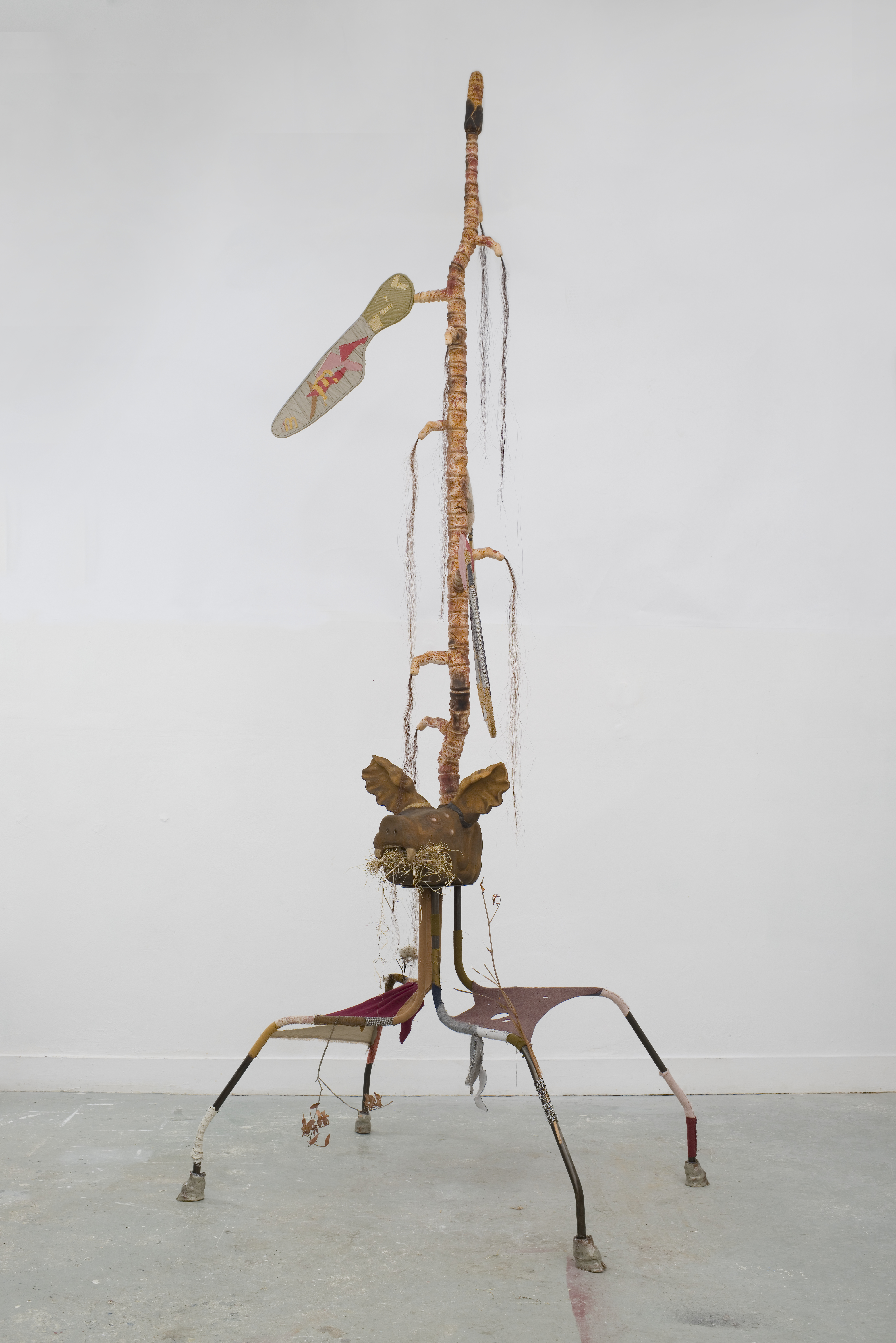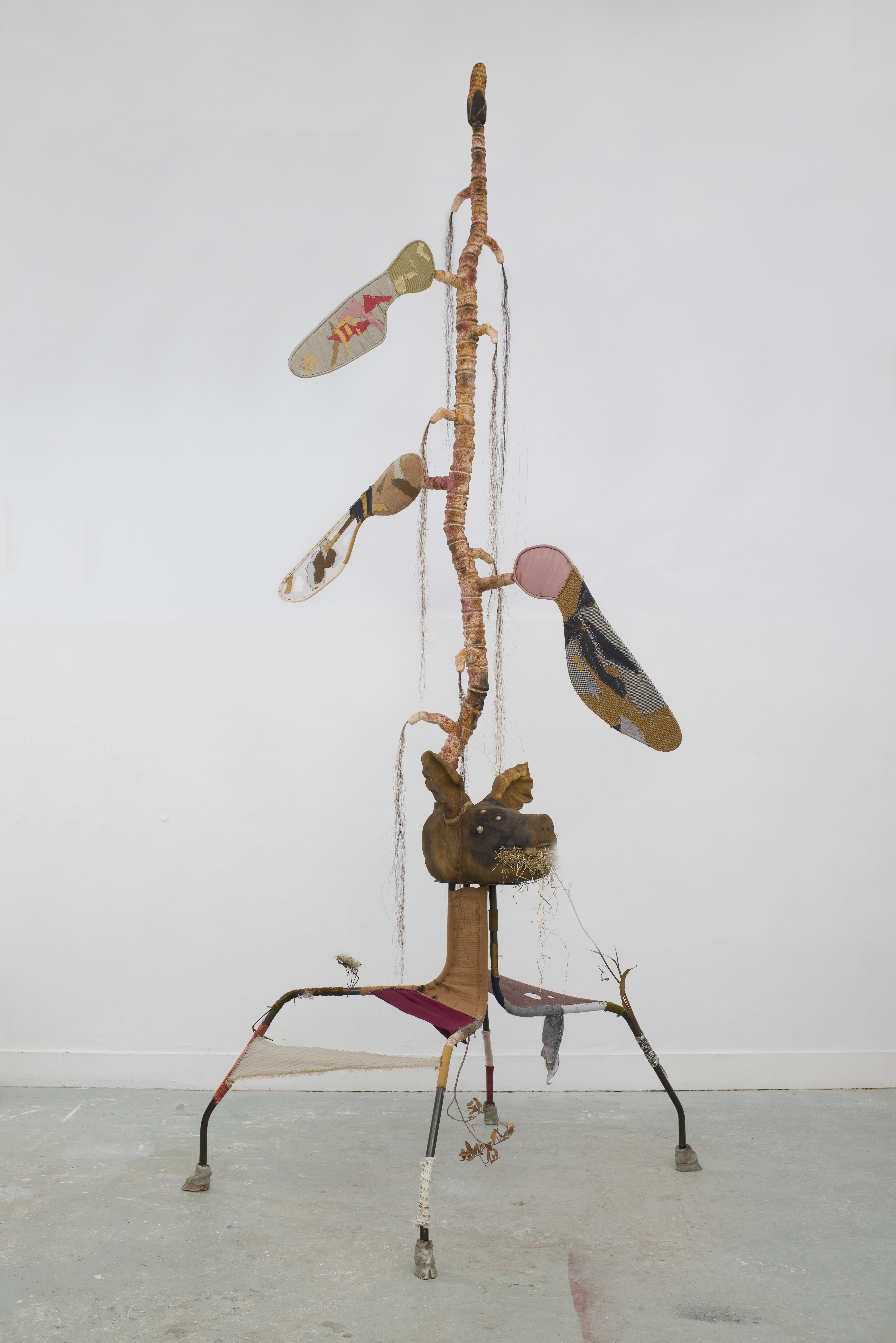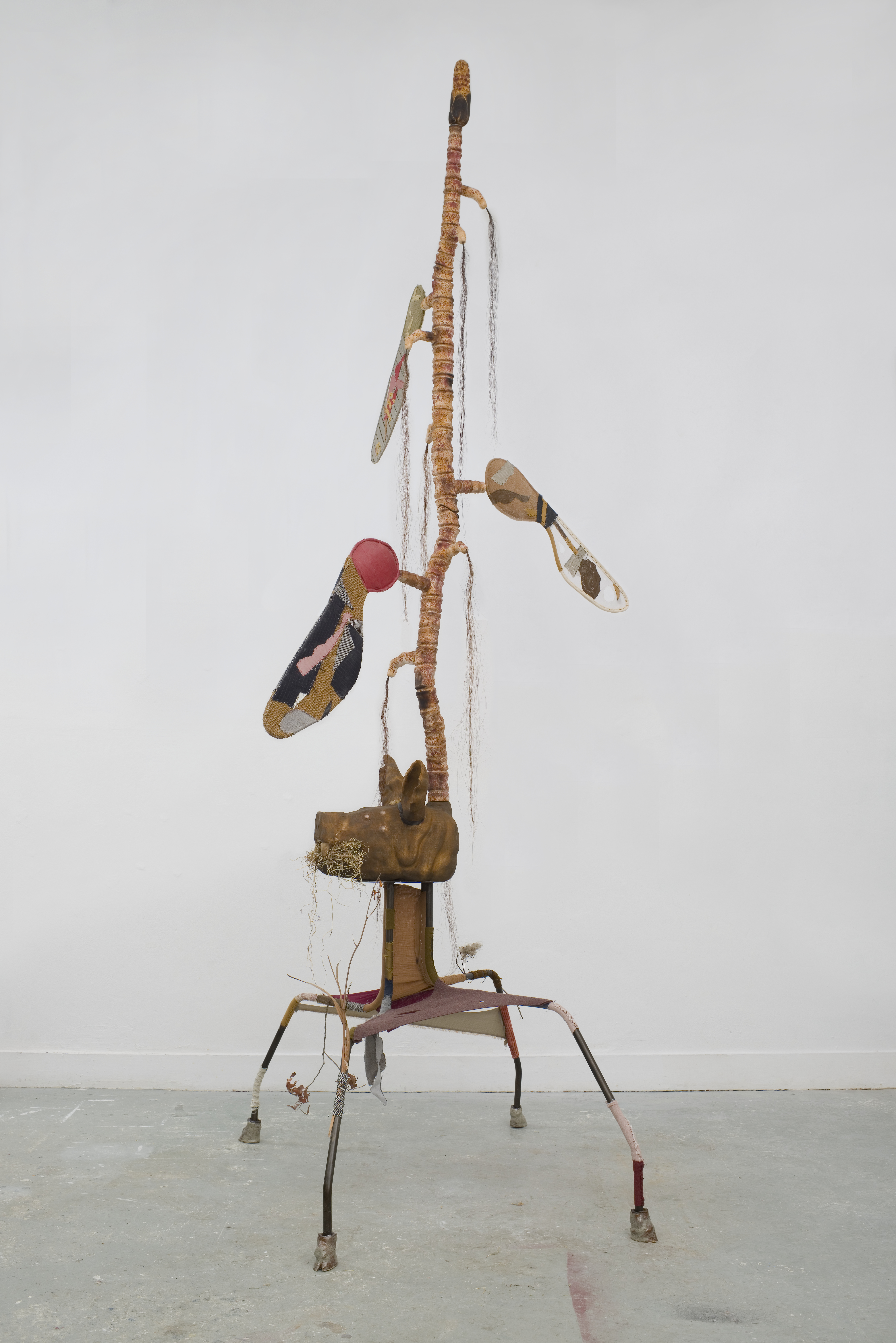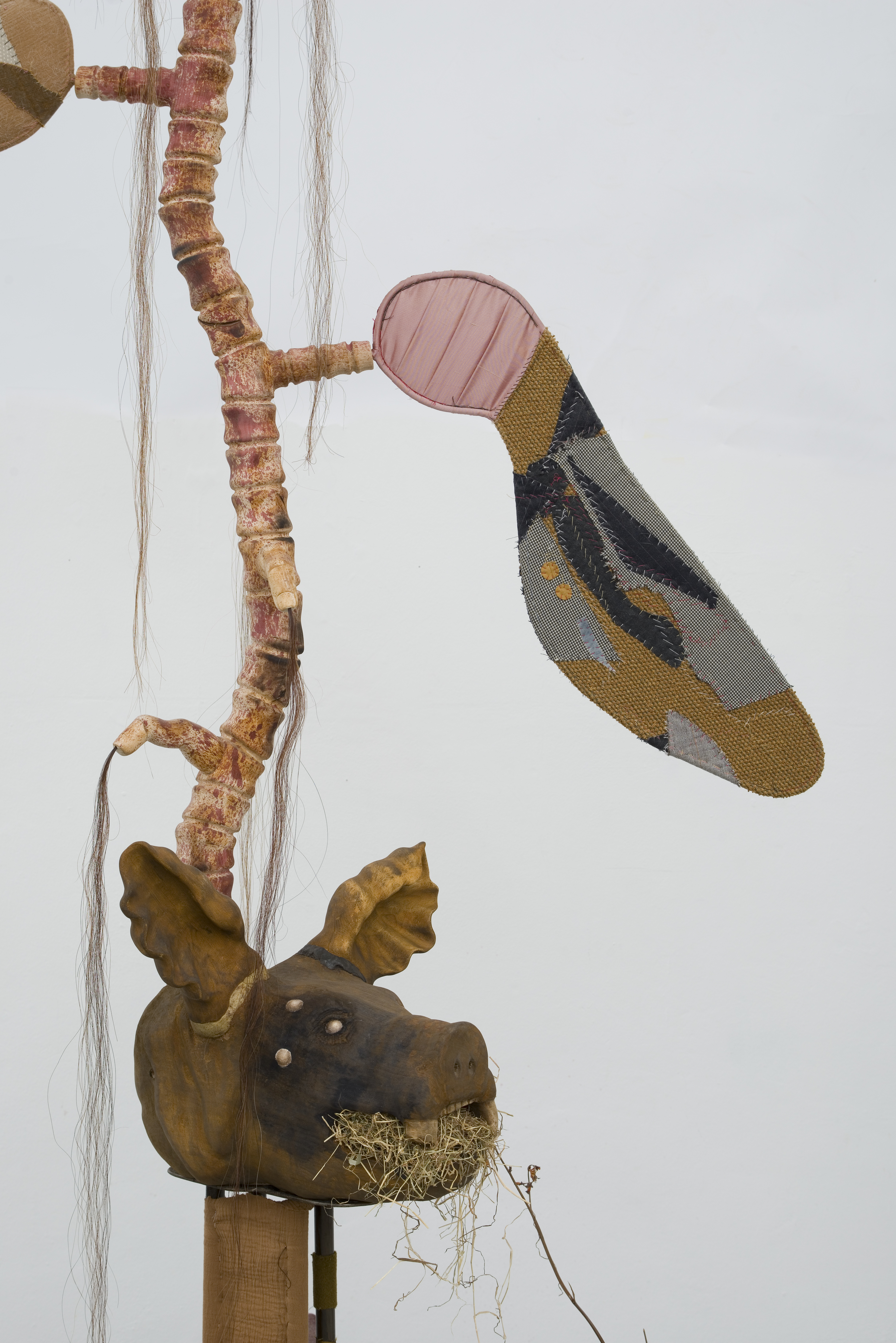 linden wood, steel, textile, horse hair, apoxy clay, dried flowers, ceramic, hay (320cm × 120cm × 100cm)